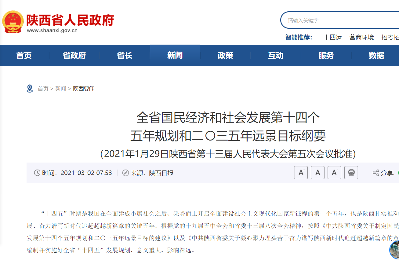 “十四五”时期是我国在全面建成小康社会之后、乘势而上开启全面建设社会主义现代化国家新征程的第一个五年,也是陕西扎实推动高质量发展、奋力谱写新时代追赶超越新篇章的关键五年。根据党的十九届五中全会和省委十三届八次全会精神,按照《中共陕西省委关于制定国民经济和社会发展第十四个五年规划和二〇三五年远景目标的建议》以及《中共陕西省委关于凝心聚力埋头苦干奋力谱写陕西新时代追赶超越新篇章的意见》,科学编制并实施好全省“十四五”发展规划,意义重大、影响深远。