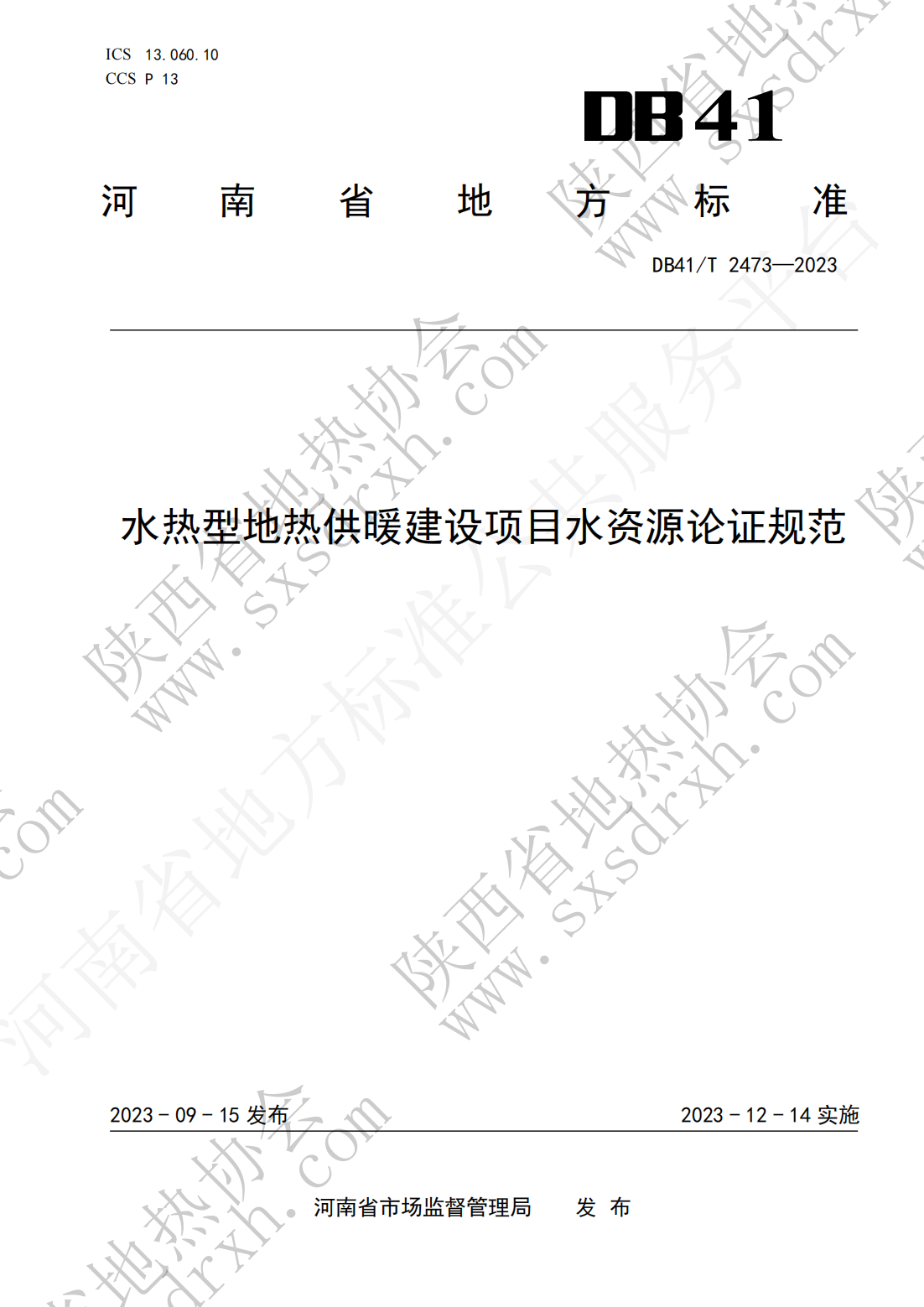 河南省地方标准:《水热型地热供暖建设项目水资源论证规范》