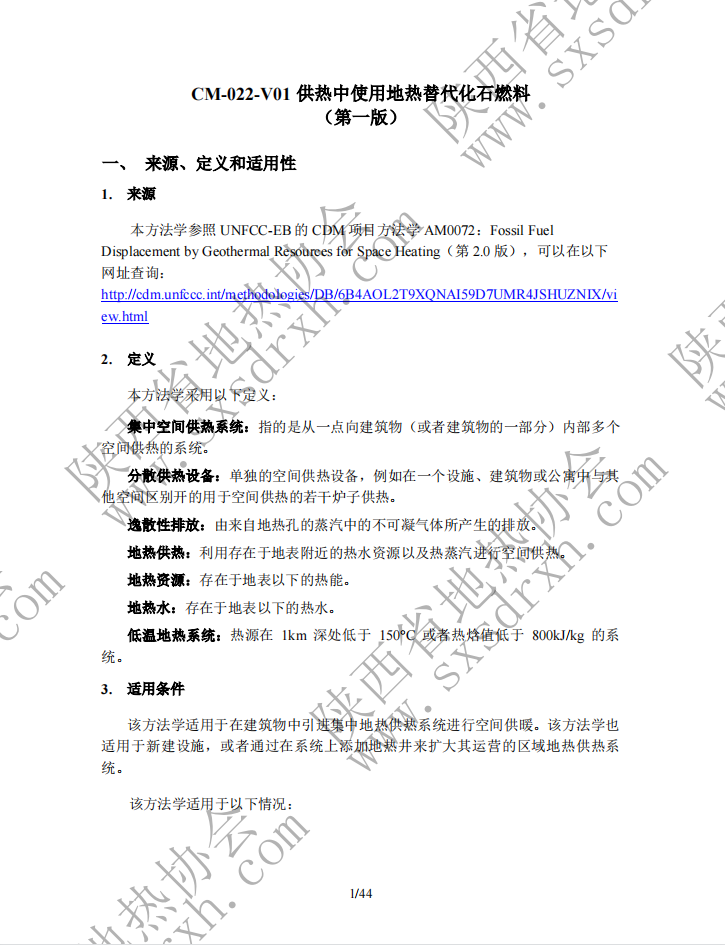 《CM-022-V01 供热中使用地热替代化石燃料(第一版)》