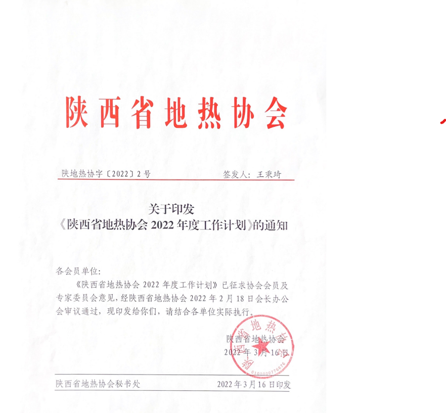 陕西省地热协会2022年度工作计划 2022年是省地热协会成立的第三年,也是聚焦“双碳”目标,贯彻落实国家发改委等八部委《关于促进地热能开发利用的若干意见》(以下简称《若干意见》)的关键之年,为做好相关工作,切实推进陕西地热事业快速发展,特制定如下工作计划。 一、指导思想 坚持以习近平生态文明思想为指导,聚焦国家2030年碳达峰和2060年碳中和目标需求,以支撑政府、服务社会、服务人民为方向,以落实国家发改委等八部委《若干意见》为主线,以扩大地热资源开发利用、大幅增加供热/制冷规模和科技创新为重点,进一步发挥陕西省地热协会的职能作用,凝聚协会全体会员力量,为推动陕西地热事业高质量发展做出新贡献。 二、工作目标 1.摸清底数:一是摸清陕西省地热资源底数。理清全省不同类型地热资源勘查工作程度,以行政区划为单元评价不同类型地热资源可利用量,形成全省地热资源开发利用资源量分布一张图。二是做好全省地热开发利用统计。开展全省地热资源开发利用现状调查和会员单位地热资源开发利用情况统计,摸清全省从事地热勘查、施工、经营性开发和科研的企事业单位技术特点、产业规模、运行现状,了解会员单位地热资源开发利用运营中的困难、诉求等。三是调研地热资源开发利用需求。按照《陕西省国民经济和社会发展十四五规划》以及八部委《若干意见》要求,积极对接省级有关部门和相关地市,开展典型地区调研,掌握陕西省建筑供暖、设施农业供暖、旅游康养等地热开发利用需求现状。 2.构建机制:一是构建与政府相关部门的协调沟通机制。全力以赴做好政府地热开发利用决策和行动计划实施的咨询服务及工程技术支撑,同时,及时准确地向政府相关部门反馈地热开发利用企业和社会公众的相关意见建议。二是构建与协会会员单位之间的协同创新机制。围绕地热资源开发利用中的存在问题和关键技术,构建协同创新组织模式,汇聚会员单位优质资源,联合开展技术攻关及地热开发利用项目示范。三是完善协会内部管理和运行机制。围绕协会协调、沟通、联系、服务能力提升,加强内部管理和运行机制优化建设,充分发挥协会职能,积极组织会员单位共同为陕西地热事业发展做贡献。 3.建强平台:一是以正在实施的地热开发利用项目为纽带,加强技术合作和交流,建立扎实有效的项目工作平台。二是充分挖掘和动态收集整理国内外、省内外地热勘查成果及开发利用新技术新方法,构建全省地热大数据体系,建立全省地热开发利用监测平台。三是依托陕西“秦创原”科技创新总平台以及地热相关重点实验室、工程技术中心、技术推广中心和试验示范区等,建成高水平技术成果转化平台。 4.技术创新:一是依托省自然资源标准技术委员会和省地热能标准化委员会,围绕地热资源开发利用全产业链的调查评价、开发利用及运营管理等环节,加强行业标准化建设。二是紧盯国内外地热开发利用技术前沿,瞄准当前制约我省地热开发利用的技术瓶颈,积极发挥协会专家委员会作用,联合科研院所、高等院校、会员单位开展技术攻关。三是及时组织进行地热开发利用创新技术总结提升和验收鉴定,定期开展地热技术交流和推广,争取承担重大科技计划项目。 5.注重成效:一是落实国家发改委等八部委《若干意见》见成效。围绕地热产业规模化发展,积极对接地方政府,选择一批社会需求大、地热地质条件好的区域,推进建设一批地热能高质量发展示范区。二是在技术创新、成果转化上见成效。围绕我省地热地质工作程度低的区域、中深层地热资源高效换热技术、地热开发利用回灌技术、干热岩勘查开发利用技术、废弃油井地热开发技术等技术热点难点联合开展科技攻关,及时将最新科技成果应用到当前的地热开发利用工程之中。三是在扩大地热供暖/制冷规模上见成效。联合各会员单位,及时跟进地热开发利用项目进度,动态统计相关信息,2022年增加供暖/制冷面积1500万平方米以上。 三、重点工作 (一)做好地热开发利用咨询服务 围绕陕西省国民经济和社会发展十四五规划纲要,以及八部委《若干意见》要求,紧密结合省自然资源厅、省能源局、省住建厅、省生态环境厅、省水利厅职责分工及管理需求,组织会员单位,梳理省内地热行业发展现状及存在问题,开展全省地热产业发展政策研究,提出有关对策建议。 2022年重点工作:编制并发布《陕西地热发展报告》,编制《关中地区地热资源开发利用区划》,起草并完善《陕西省地热资源管理办法》。 (二)查明资源现状 夯实开发利用基础 一是开展地热资源调查评价工作,查明地热地质条件和开发利用潜力,支撑服务地热资源管理与规划。 2022年重点工作:指导协调会员单位做好承担的地热资源调查评价项目,主要包括:陕西省韩城市东部断陷区岩溶地热水资源勘查与评价,陕西省铜川市地热资源勘查,陕西省凤县盆地地热资源勘查,陕西省延川县沿黄生态城镇带地热资源调查评价,陕西省佛坪县地热资源调查,陕西省留坝县天然矿泉水及地热资源调查评价;开展我省干热岩型地热资源调查评价,基本查明陕西省干热岩资源地热地质条件与成因,分析干热岩资源分布规律和热源机制,圈定干热岩勘查靶区,并估算4000米以浅干热岩资源量,填补我省干热岩研究空白,提出陕西省干热
