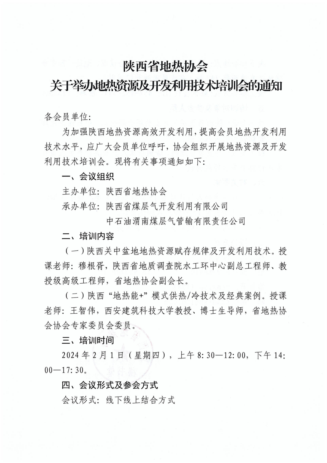 陕西省地热协会关于举办地热资源及开发利用技术培训会的通知